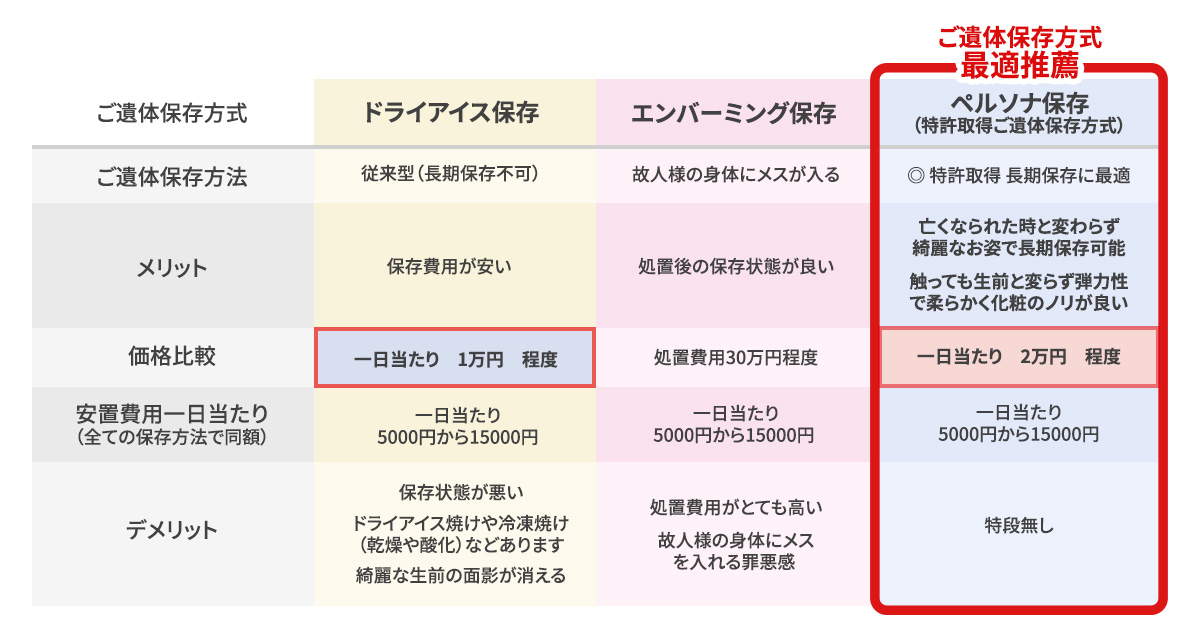 遺体を腐敗や分解から守って長期保存はできますが処置が特殊なため高額で、処置するため決められた場所まで輸送しなければなりません。